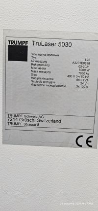 Sprzedaż wycinarki laserowej TRUMPF TruLaser 5030 – 8 kW