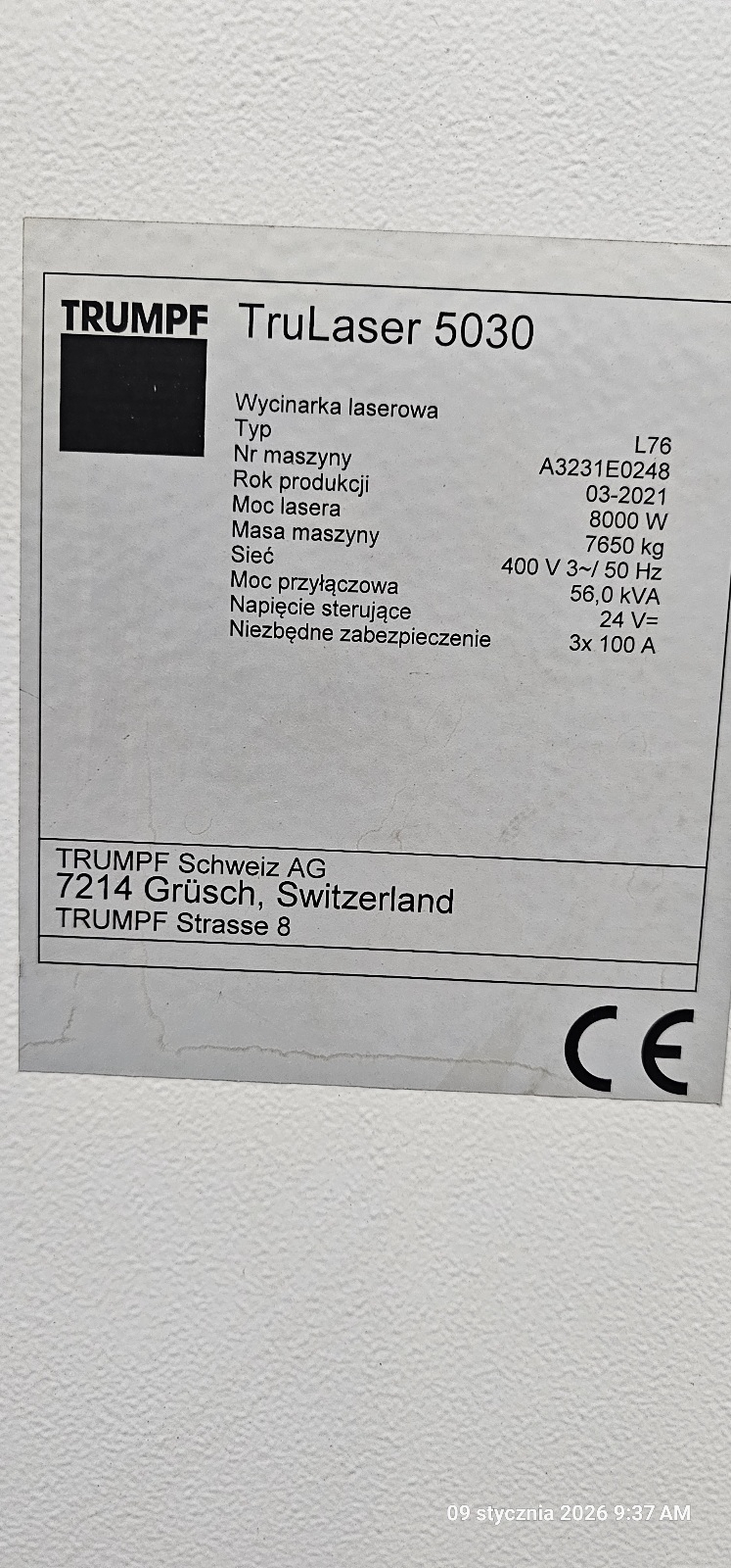 - Producent: TRUMPF Schweiz AG, Grusch (Szwajcaria)